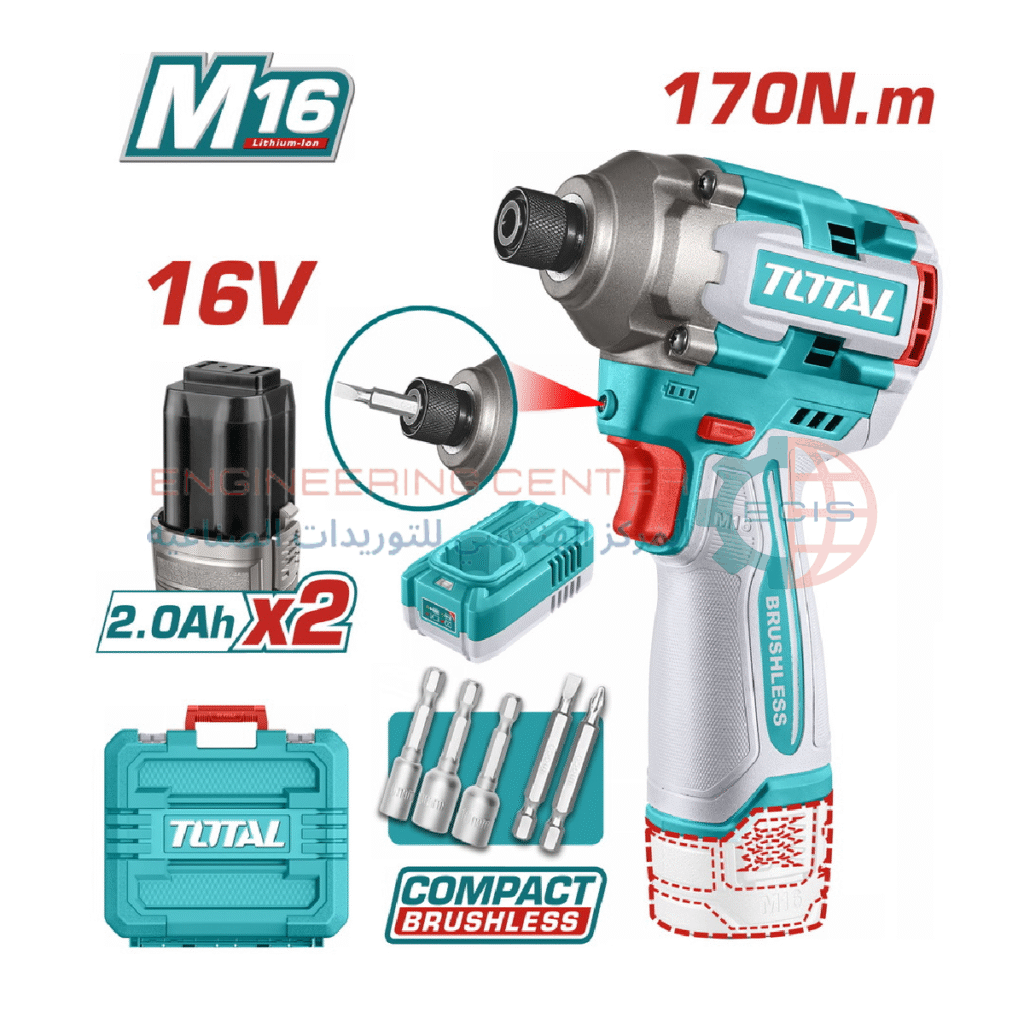 مفك حل وربط بطارية 16فولت 170نيوتن مع 2 بطارية و شاحن توتال
