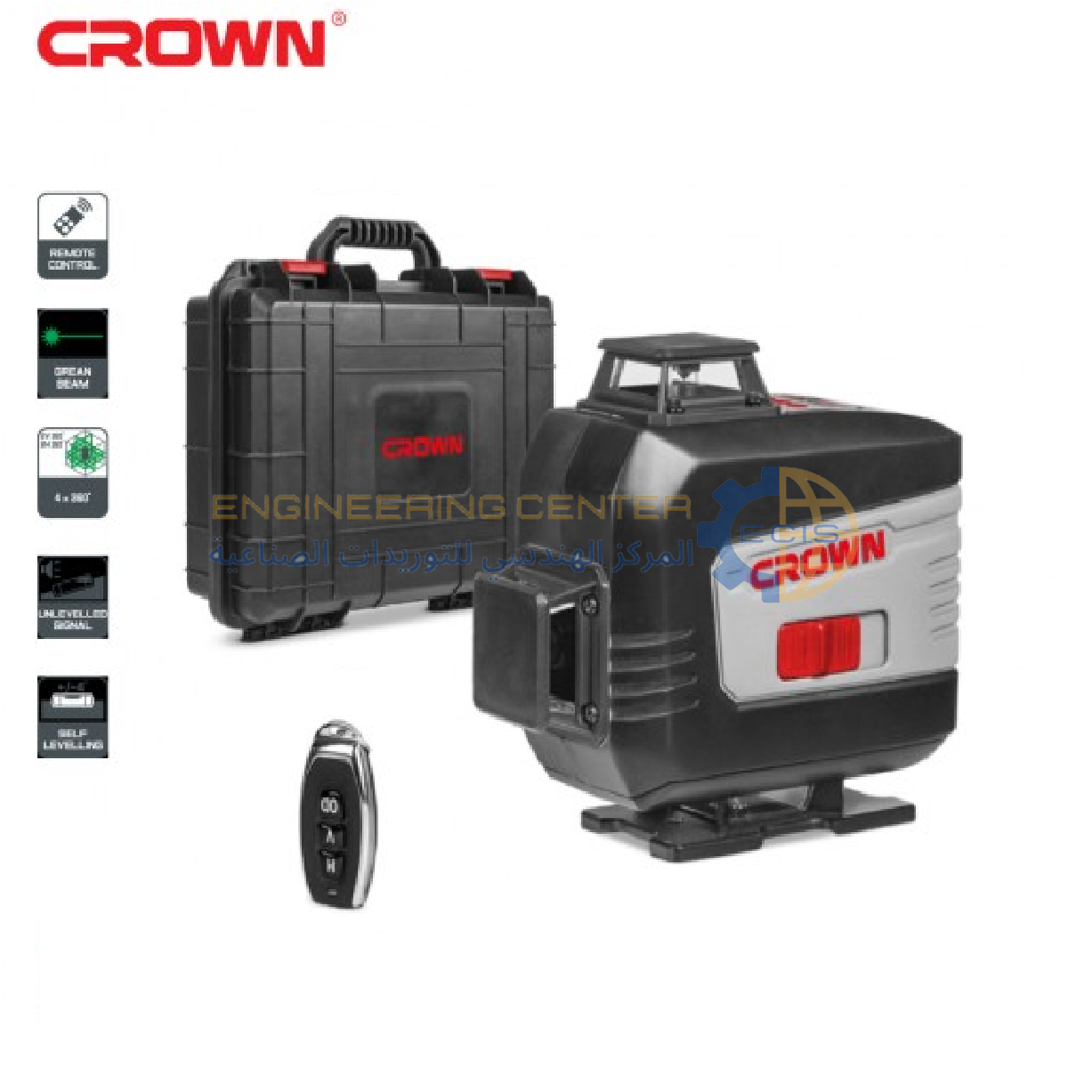 ميزان ليزر اخضر 4 خط احمر 16متر 360 درجة 4 عدسة بالريموت كراون