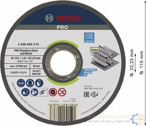 قرص تقطيع PRO Stainless Steel and Metal Bonded لقطع المعادن والفولاذ المقاوم للصدأ بتصميم مستقيم مقاس 115 x 1.6 x 22.23 مم