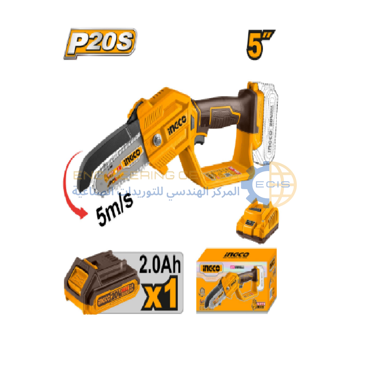 منشار تقليم شجر بطارية 20 فولت 1 بطارية 2 امبير انكو