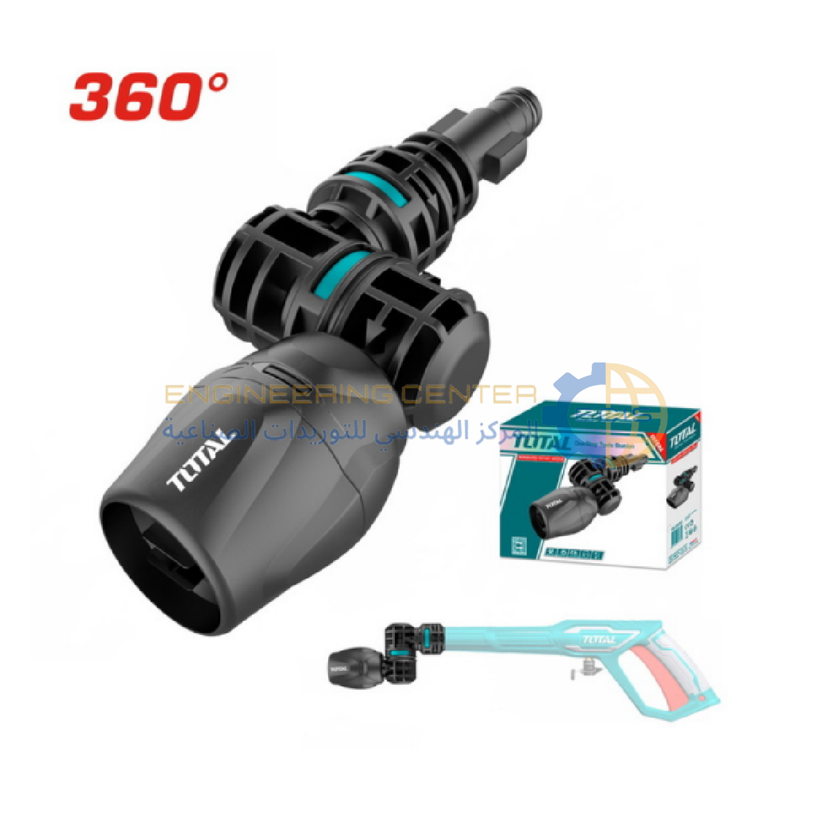 تنظيف قوي: يولد رذاذاً دواراً قوياً يساعد في إزالة الأوساخ العنيدة من السيارات، الأرضيات، والجدران.