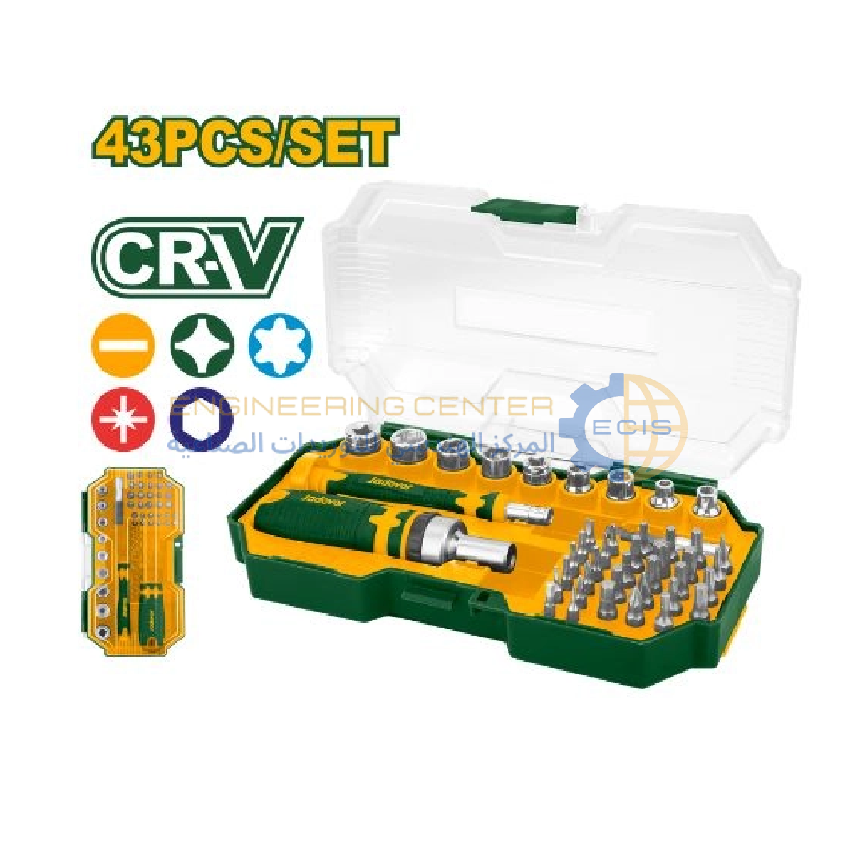يحتوي الطقم على تشكيلة واسعة من الأدوات لتغطية احتياجات مختلفة، تشمل: