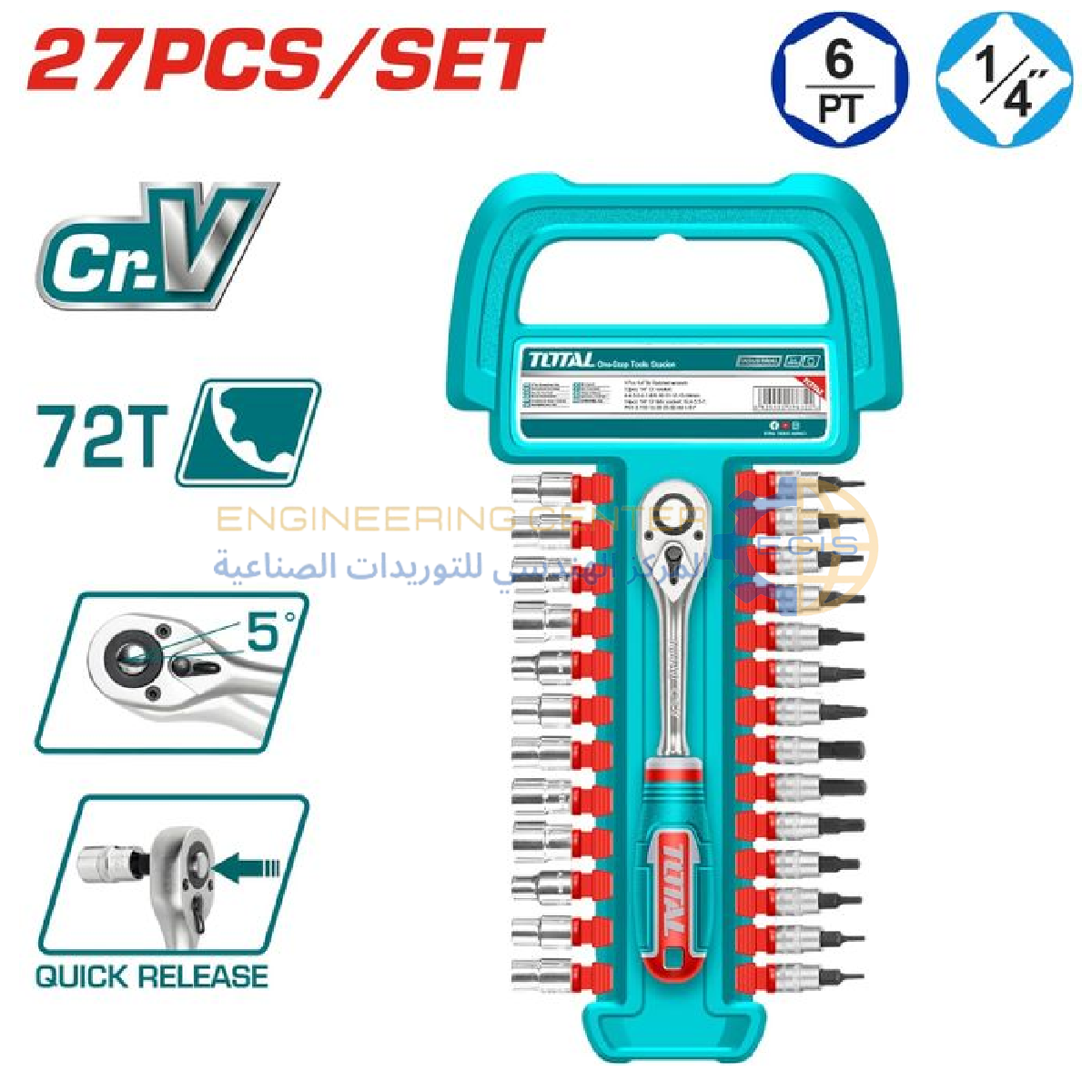 طقم لقم مسدس + سن مفك 4/1 بوصة 27 قطعة علي ستاند توتال